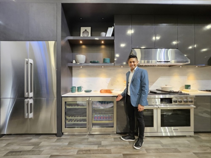 ▲ 삼성전자 직원이 삼성전자 부스에서 럭셔리 빌트인 주방가전 브랜드 ‘데이코’의 빌트인 라인업을 소개하고 있다.