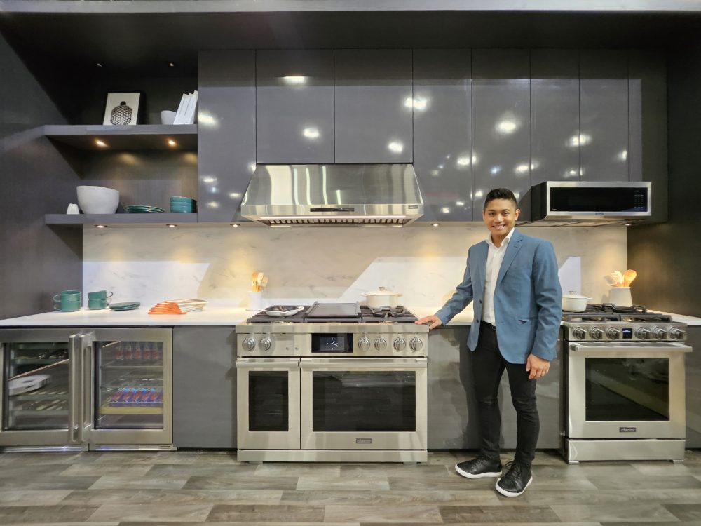 ▲ 삼성전자 직원이 삼성전자 부스에서 럭셔리 빌트인 주방가전 브랜드 ‘데이코’의 빌트인 라인업을 소개하고 있다.