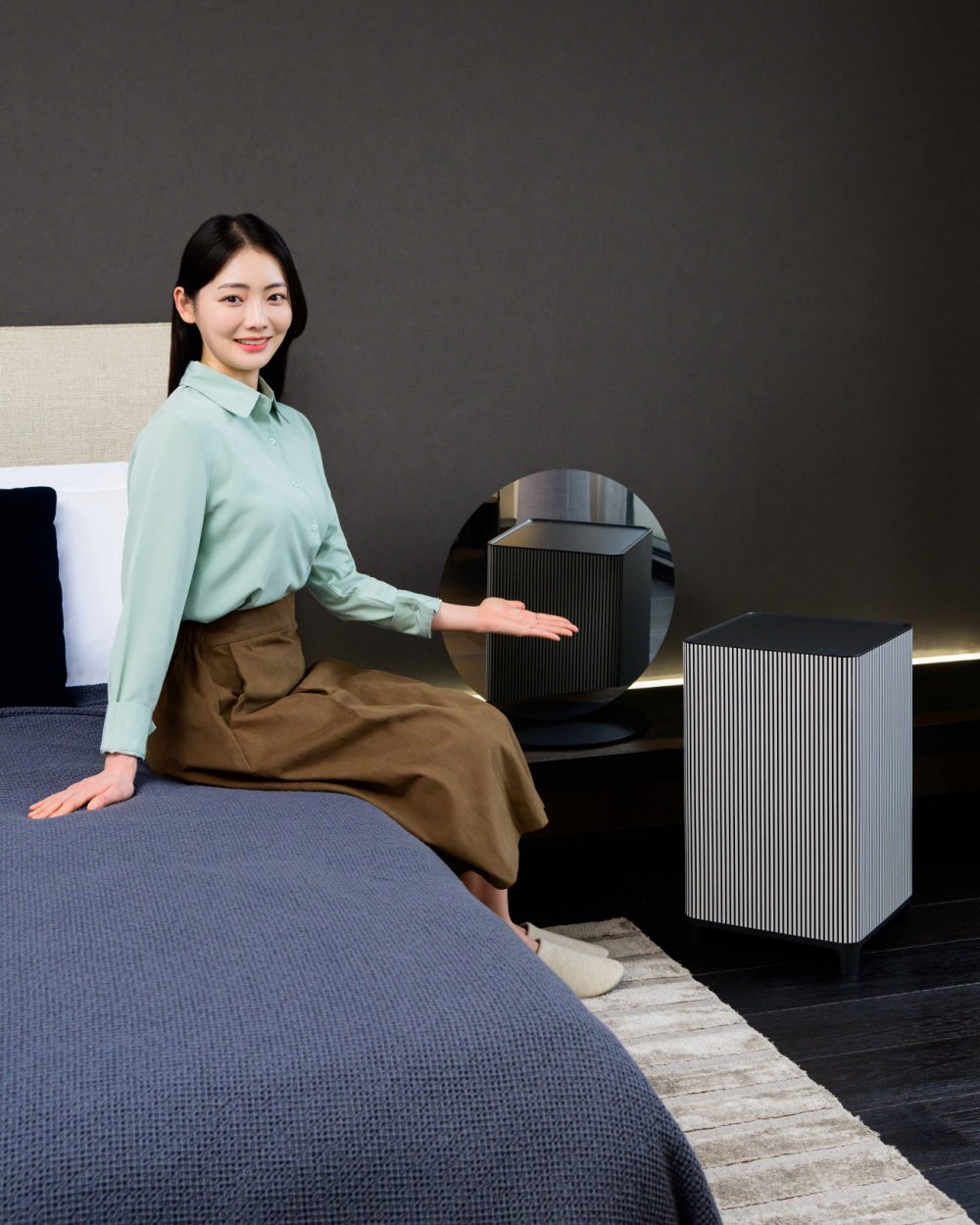 ▲삼성전자 모델이 AI 기능 프리미엄 공기청정기 ‘비스포크 큐브 에어 인피니트 라인’을 소개하고 있다.