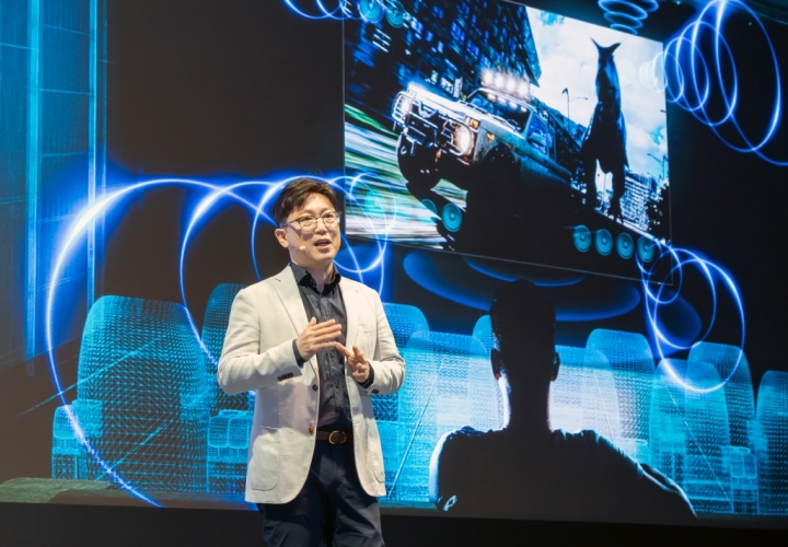▲ 삼성전자 용석우 사장이 ‘Unbox & Discover 2024’ 행사에서 AI TV 시대를 선언하며 2024년 TV 전략을 소개했다.