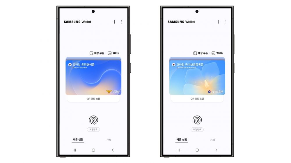 ▲삼성월렛에 실물 신분증과 똑같은 법적 효력이 있는 모바일 신분증인 ‘모바일 운전면허증’과 ‘모바일 국가보훈등록증’이 탑재된 이미지