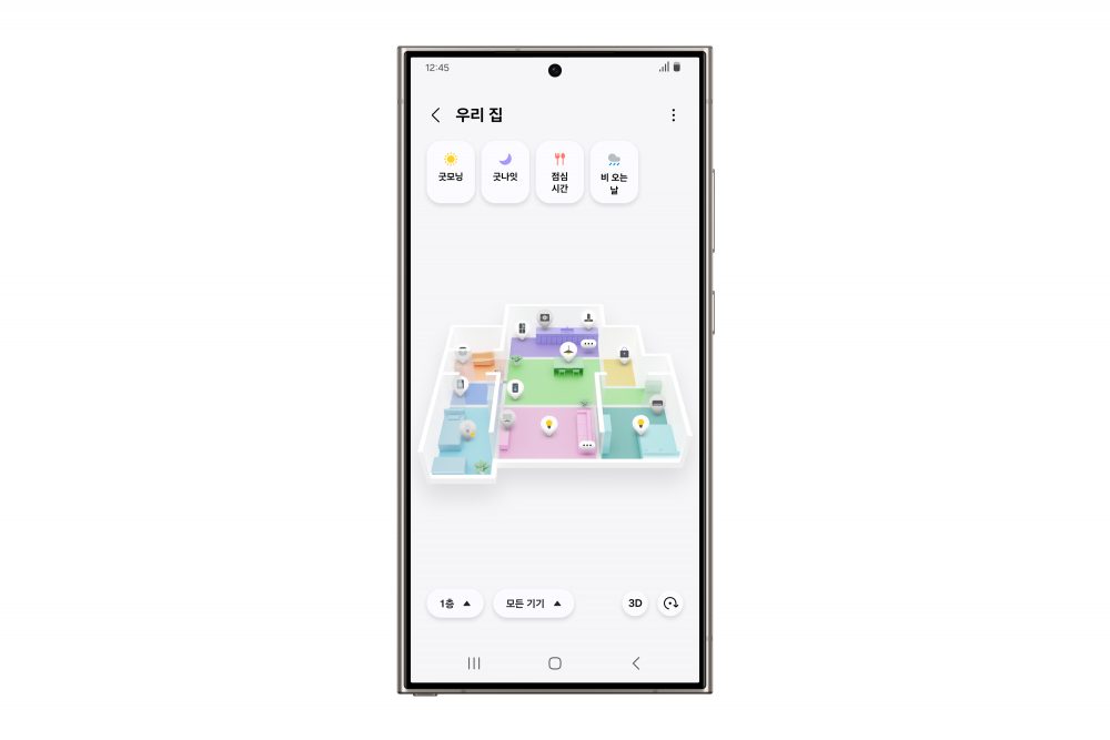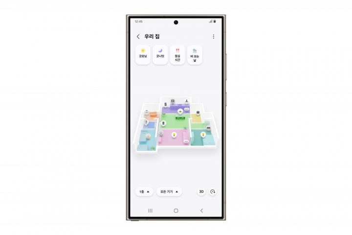 ▲주거 공간의 3D 평면도를 보면서 공간별 기기를 한눈에 파악하고 관리할 수 있는 ‘맵뷰’를 ‘갤럭시 S24 울트라’에서 이용하는 예시 화면