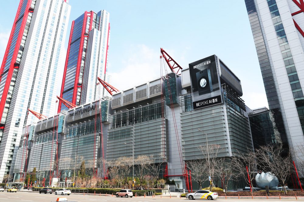 ▲ 서울 여의도에 위치한 더현대 서울에 삼성전자 ‘비스포크 AI 콤보’ 디지털 옥외광고가 게재된 모습