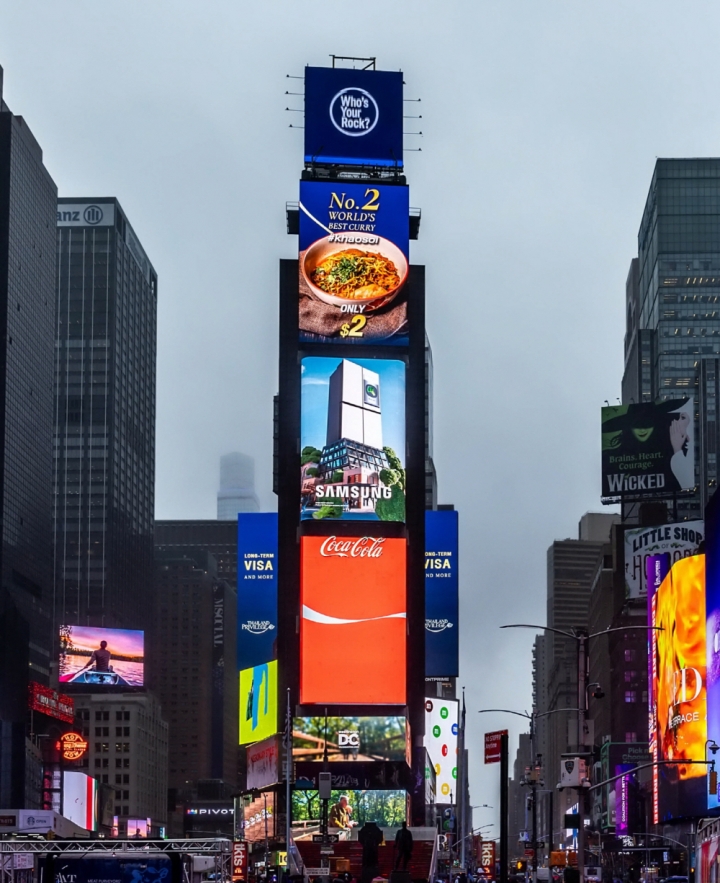 ▲ 삼성전자가 미국 뉴욕 타임스스퀘어에서 ‘비스포크 AI 패밀리허브’ 냉장고 영상으로 옥외광고를 선보이고 있다.