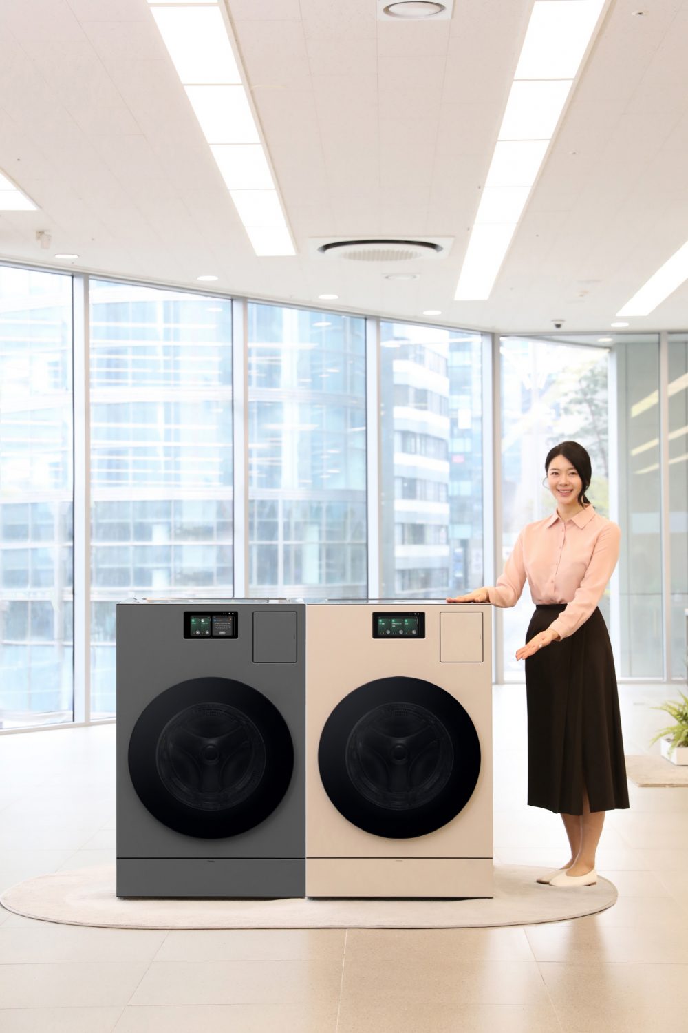 ▲삼성전자 모델이 삼성스토어 서초점에서 ‘비스포크 AI 콤보’ 다크실버스틸, 새틴 라이트베이지 제품을 소개하는 모습