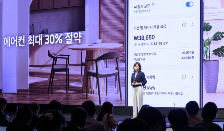 ▲ 스마트싱스가 에너지 절감에 기여하는 점을 설명하는 삼성전자 DA사업부 정세림 프로