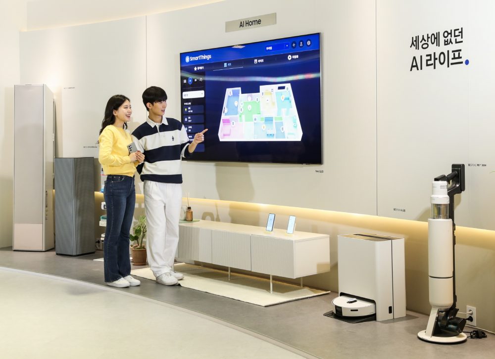 ▲ 17일 서울 코엑스에서 개막한 ‘2024 월드IT쇼’ 삼성전자관에서 ‘AI 가전’의 스마트한 라이프스타일을 체험하고 있는 모습