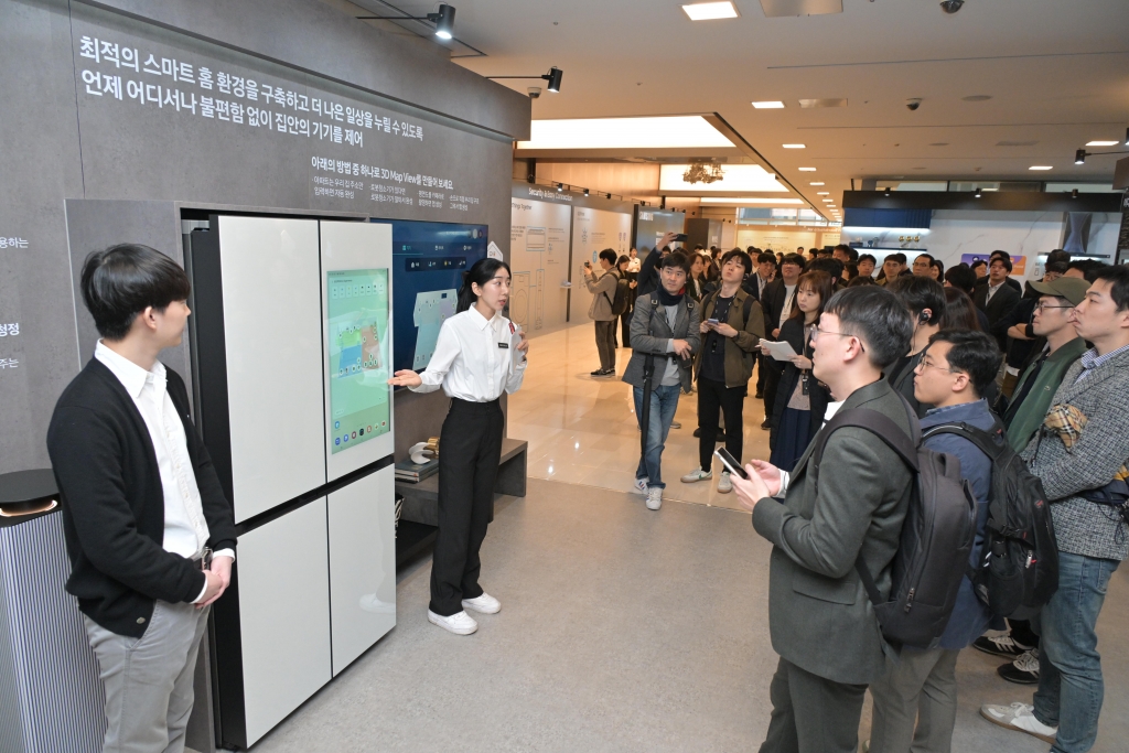 ▲삼성전자 서초사옥에서 다양한 ‘비스포크 AI’ 제품을 시연하고 있다.
