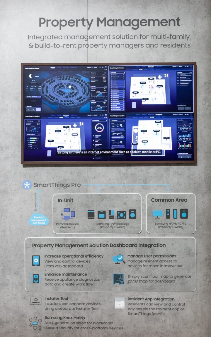 에서 자사 스마트싱스(SmartThings) 서비스가 적용된 홈 IoT 관제 솔루션과 에너지 관리 솔루션이 소개됐다.