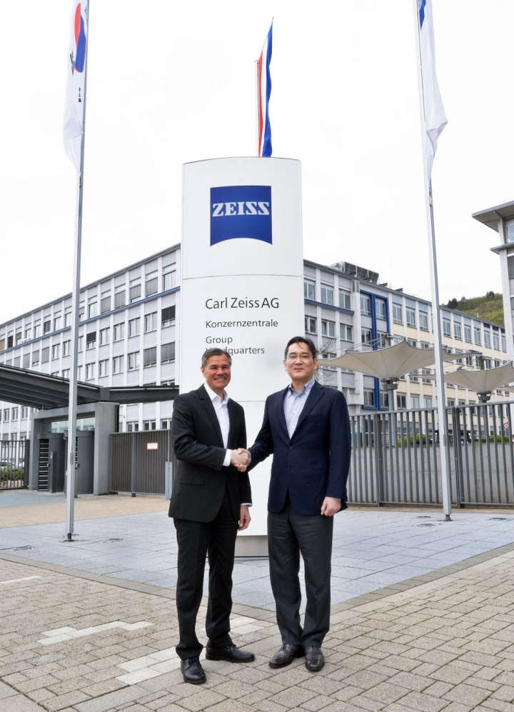 이재용 삼성전자 회장은 26일(현지 시간) 독일 오버코헨에 위치한 자이스(ZEISS) 본사를 방문해 칼 람프레히트(Karl Lamprecht) CEO 등 경영진과 양사 협력 강화 방안을 논의했다.