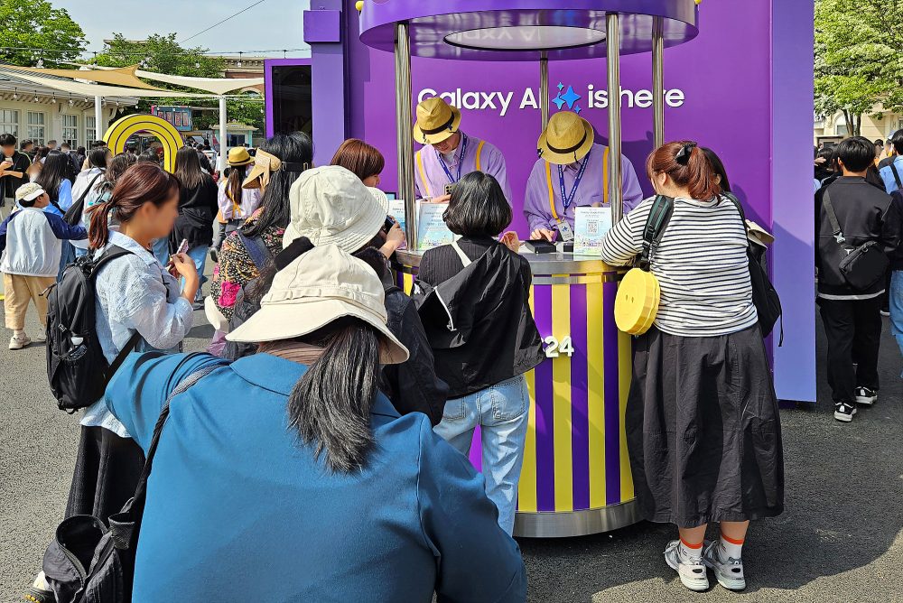 ▲ 에버랜드에 마련된 ‘갤럭시 스튜디오 Photo’에서 방문객들이 ‘갤럭시 S24 시리즈’를 무료로 대여해주는 ‘갤럭시 To Go’ 서비스를 이용하고 있다.