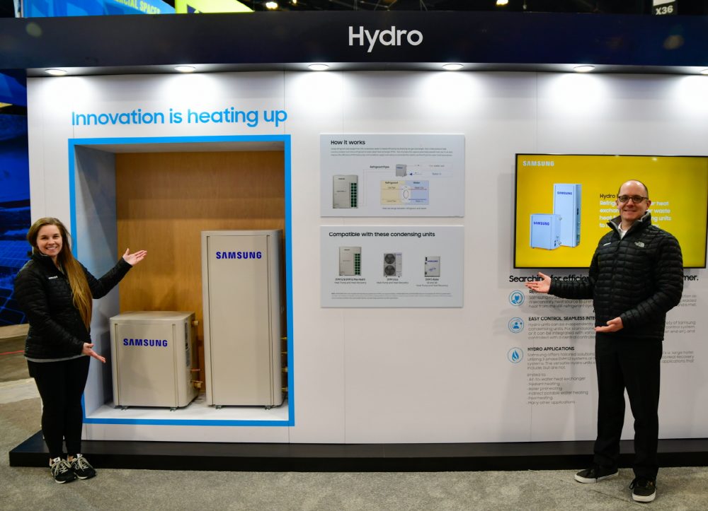 ▲ 삼성전자가 미국 시카고에서 개최되는 북미 최대 공조 전시회 ‘2024 AHR 엑스포’에 참가해 혁신적인 공조 솔루션을 선보인다. 삼성전자 모델이 DVM 라인업을 소개하고 있는 모습