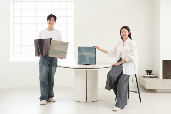 ▲ 삼성전자 모델이 패션 브랜드 ‘지용킴’과 협업한 ‘뮤직 프레임 X 지용킴’ 스페셜 에디션을 소개하고 있다.