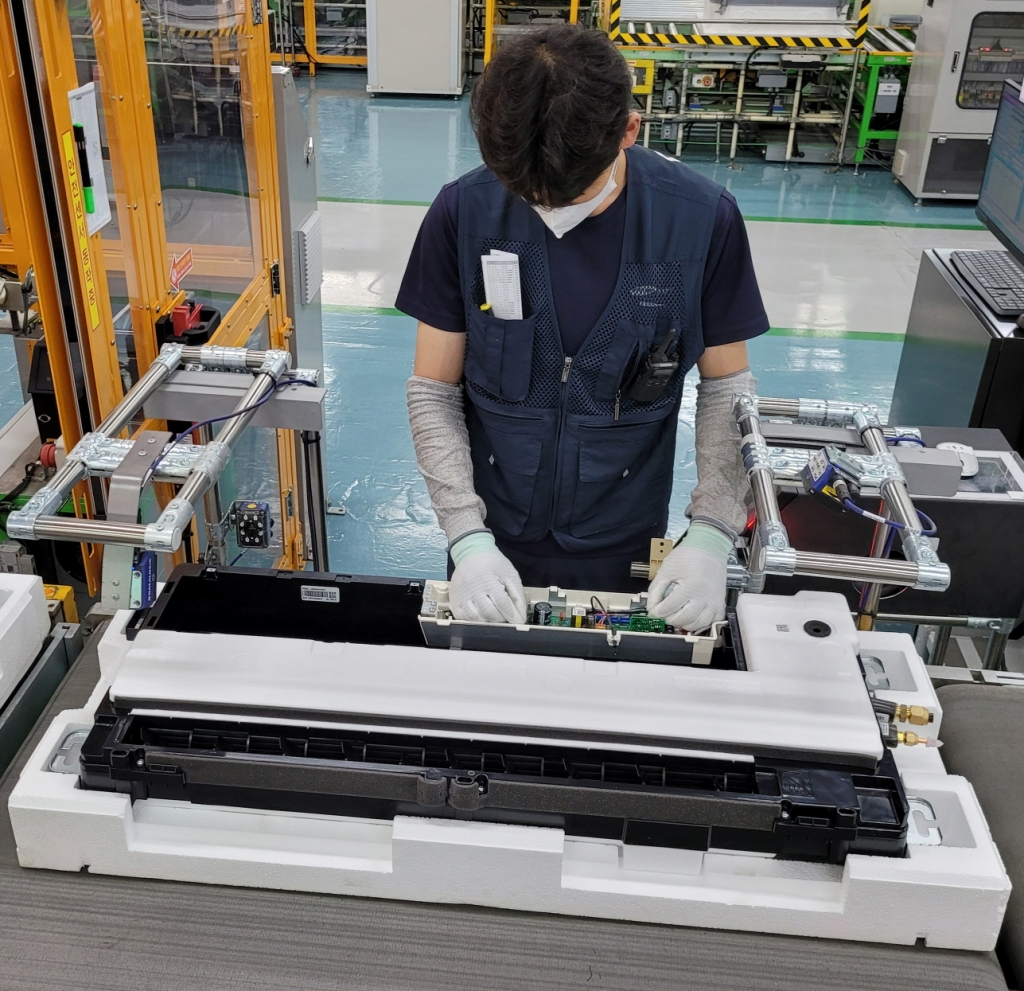 ▲광주광역시 광산구 하남산단 6번로에 위치한 삼성전자 광주사업장에서 직원들이 ‘시스템 에어컨’을 생산하는 모습
