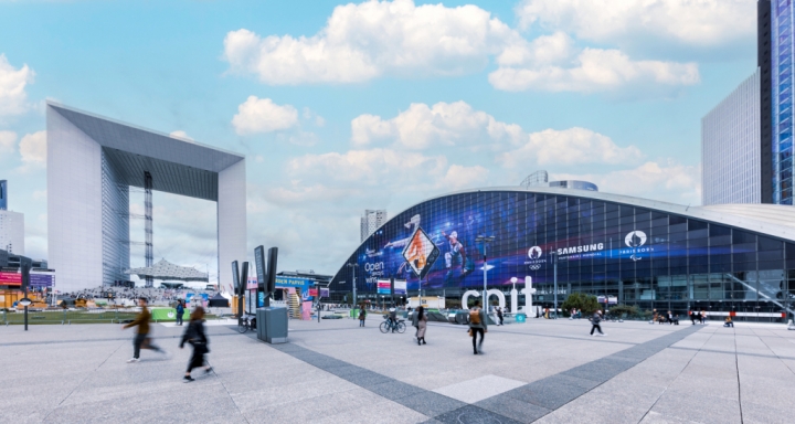 ▲ 삼성전자가 프랑스 파리 라 데팡스에서 진행중인 올림픽 옥외광고