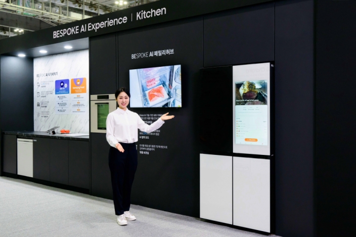 ▲ 삼성전자 모델이 27일부터 29일까지 광주광역시 김대중컨벤션센터에서 진행되는 ‘2024 광주미래산업엑스포’에 마련된 삼성전자 ‘비스포크 AI 키친’ 존을 소개하고 있는 모습