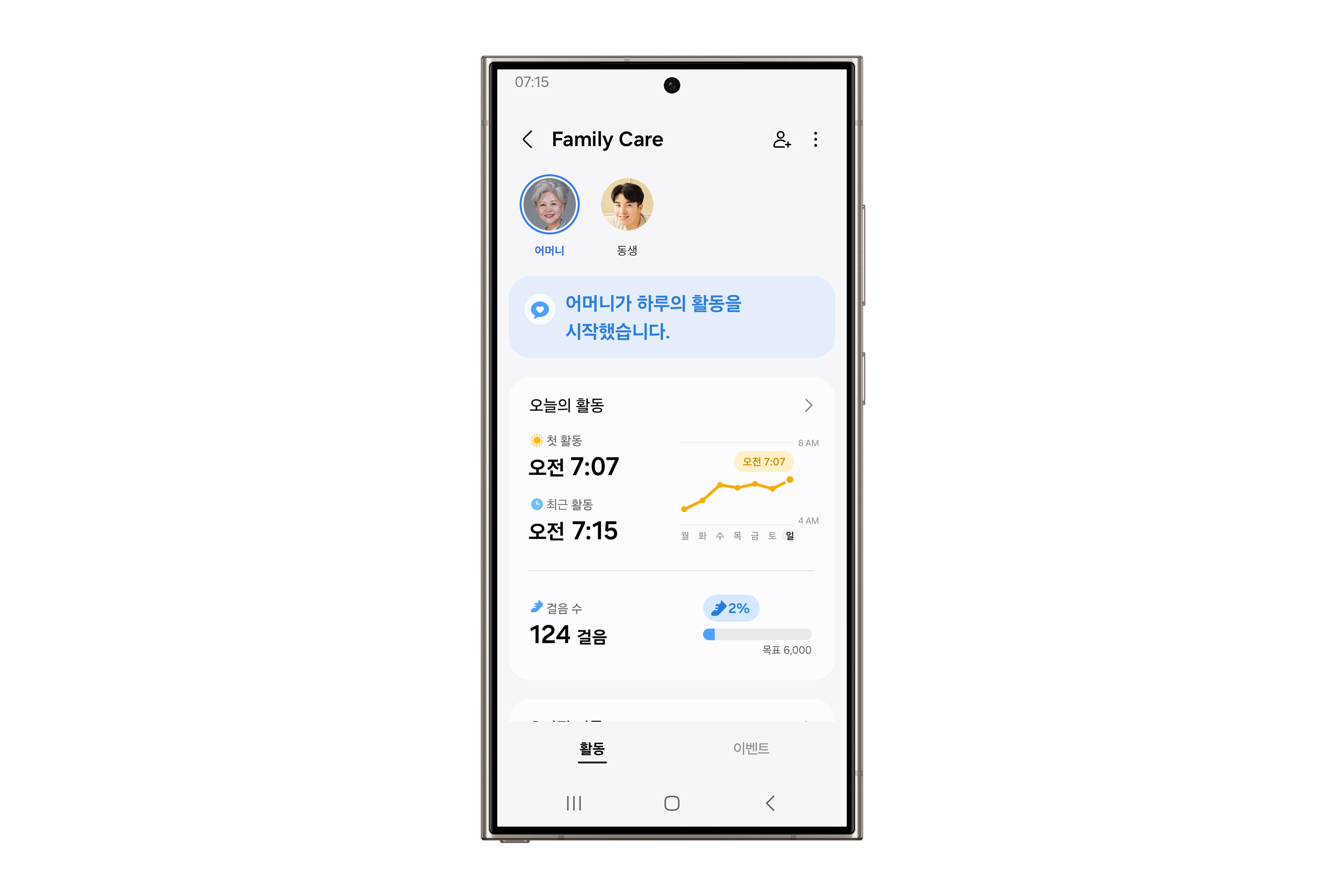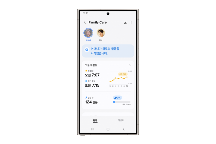 ▲ 스마트싱스 앱의 ‘패밀리 케어’ 서비스 활동알림 화면