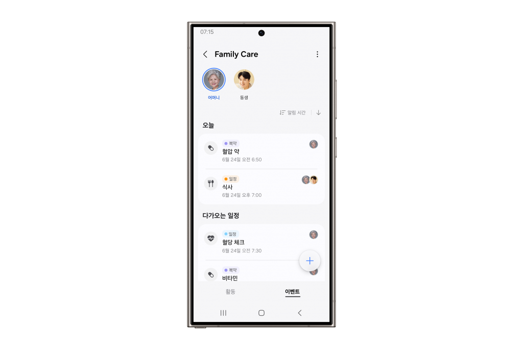 ▲ 스마트싱스 앱의 ‘패밀리 케어’ 서비스 일정알림 화면