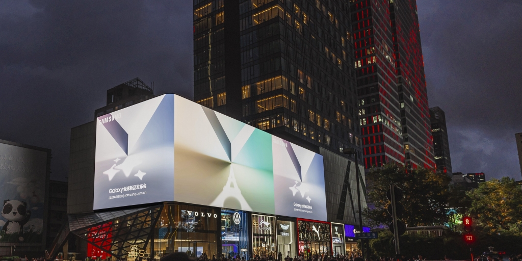 ▲ 26일(현지시간) 중국 청두 타이쿠리(Tai Koo Li)의 ‘갤럭시 언팩 2024’ 디지털 옥외 광고