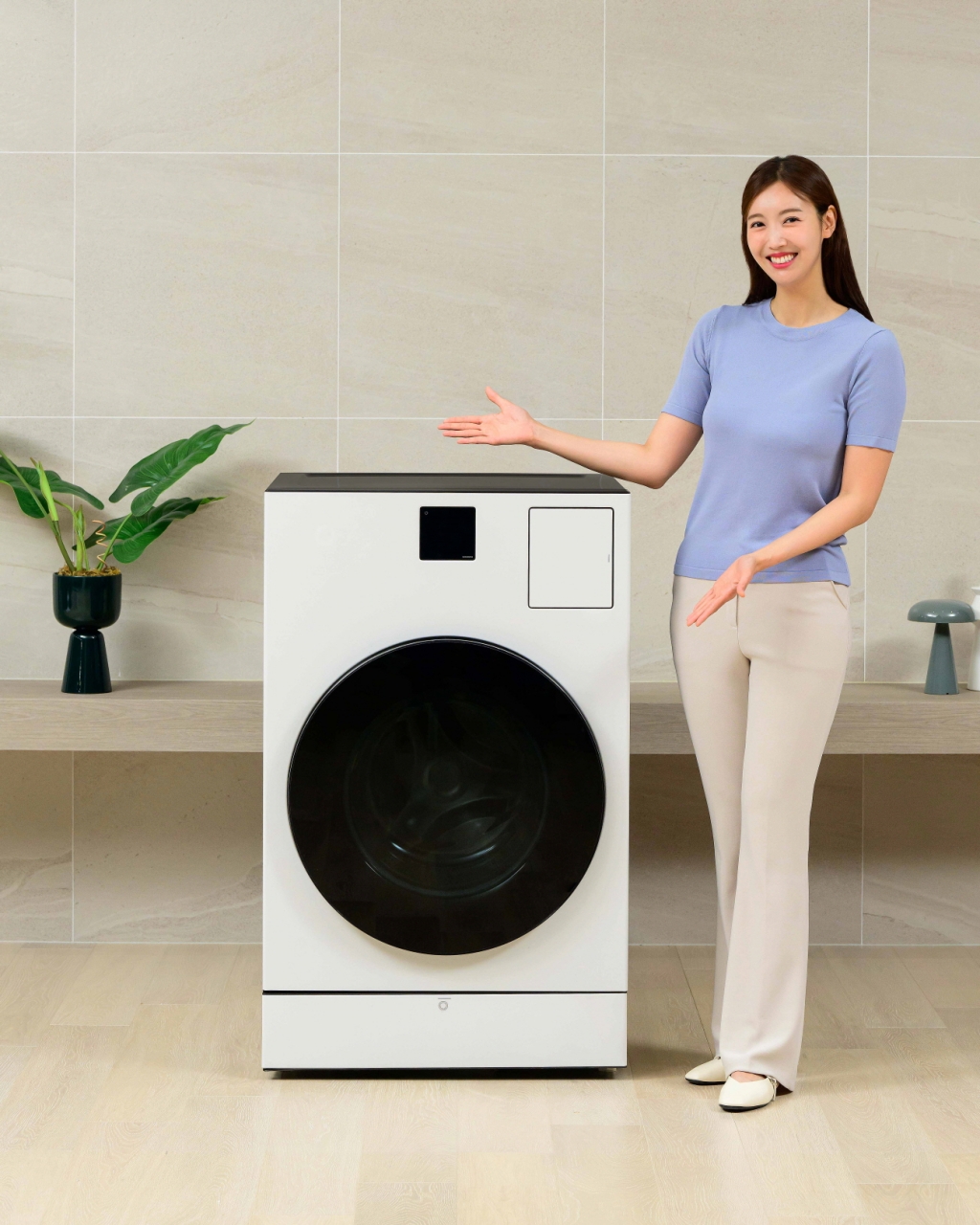 ▲삼성전자 모델이 올인원 세탁건조기 ‘비스포크 AI 콤보’ 신제품을 소개하고 있다.