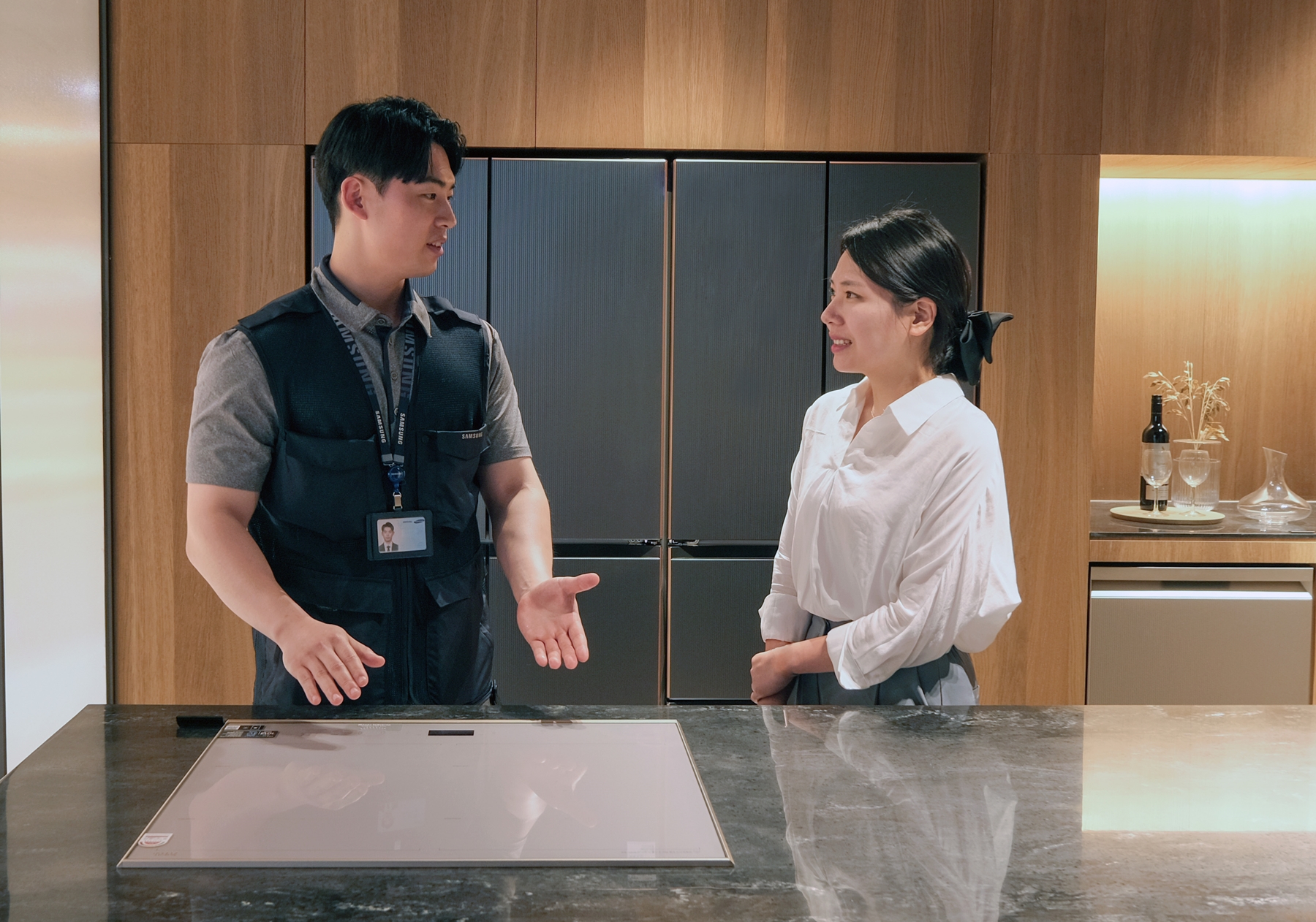 ▲ 삼성전자서비스 엔지니어와 상담사가 고객에게 서비스를 제공하는 모습