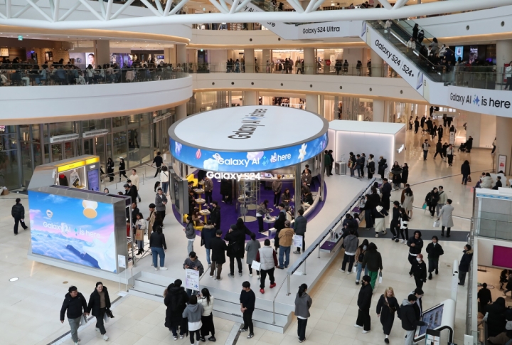 ▲ 지난 1월 18일, 서울 영등포구 타임스퀘어에서 운영했던 ‘갤럭시 스튜디오’에서 갤럭시 S24 시리즈를 체험하고 있는 관람객들