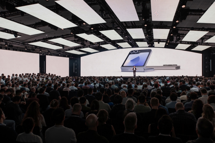 ▲ 10일(현지시간) 프랑스 파리에 위치한 '카루젤 뒤 루브르(Carrousel du Louvre)'에서 개최된 하반기 '갤럭시 언팩 2024'에서 '갤럭시 Z 폴드6', '갤럭시 Z 플립6' 제품 소개