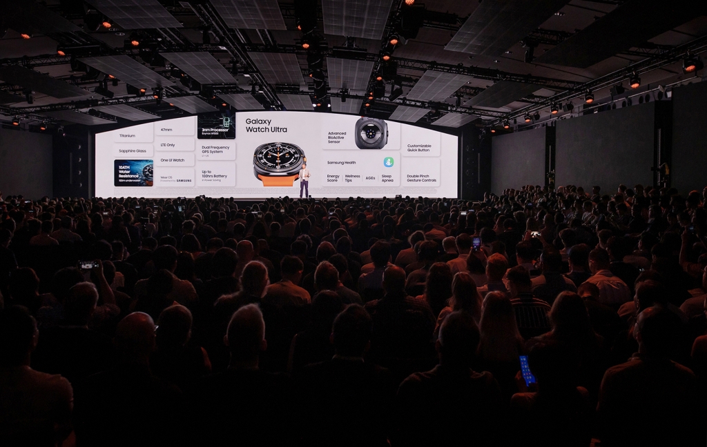 ▲ 10일(현지시간) 프랑스 파리에 위치한 '카루젤 뒤 루브르(Carrousel du Louvre)'에서 개최된 하반기 '갤럭시 언팩 2024'에서 '갤럭시 링', '갤럭시 워치7·워치 울트라', '갤럭시 버즈3 시리즈' 제품 소개