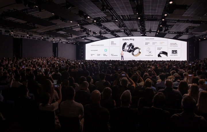 ▲ 10일(현지시간) 프랑스 파리에 위치한 '카루젤 뒤 루브르(Carrousel du Louvre)'에서 개최된 하반기 '갤럭시 언팩 2024'에서 '갤럭시 링', '갤럭시 워치7·워치 울트라', '갤럭시 버즈3 시리즈' 제품 소개