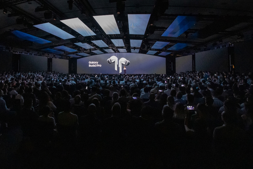 ▲ 10일(현지시간) 프랑스 파리에 위치한 '카루젤 뒤 루브르(Carrousel du Louvre)'에서 개최된 하반기 '갤럭시 언팩 2024'에서 '갤럭시 링', '갤럭시 워치7·워치 울트라', '갤럭시 버즈3 시리즈' 제품 소개