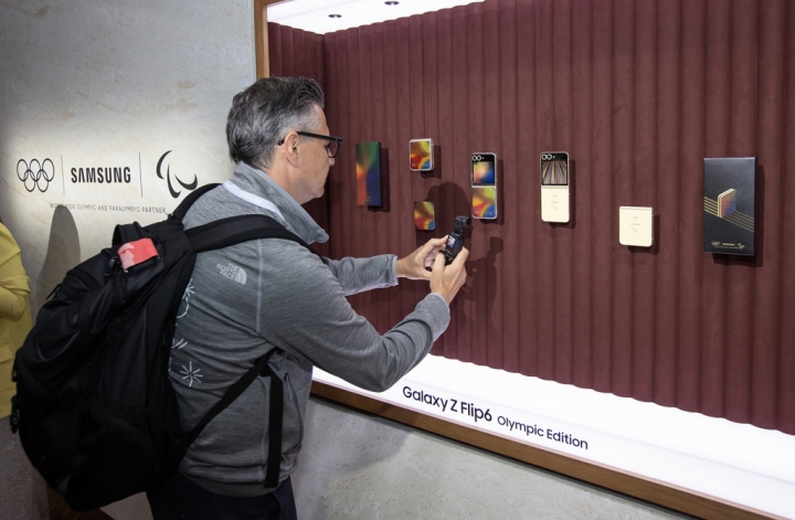 ▲ 10일(현지시간) 프랑스 파리에 위치한 '카루젤 뒤 루브르(Carrousel du Louvre)'에서 개최된 하반기 '갤럭시 언팩 2024'에서 관람객이 '갤럭시 Z 플립6 올림픽 에디션'을 살펴보고 있는 모습