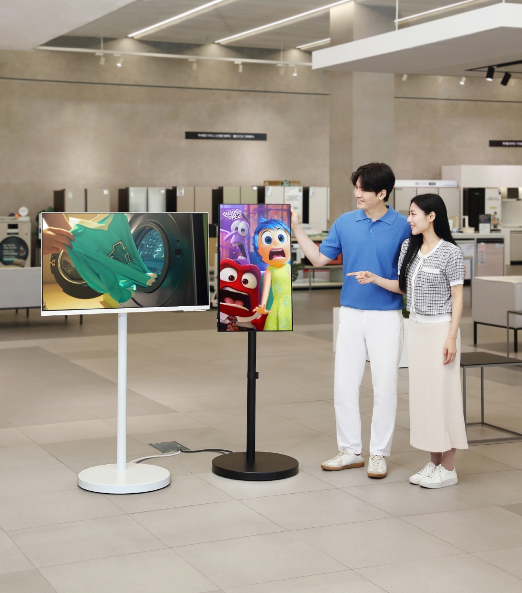 ▲ 삼성전자 모델이 삼성전자 스마트모니터에 무빙 스탠드를 결합한 ‘무빙스타일’을 소개하고 있다.