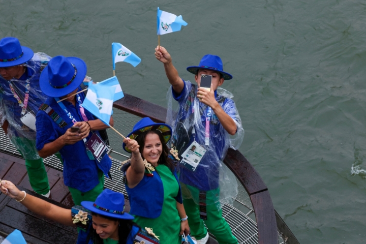 ▲ 7월 26일(현지시간) 2024 파리 올림픽 개막식 퍼레이드에 참석한 각국 선수단이 ‘갤럭시 Z 플립6 올림픽 에디션’으로 사진촬영을 하고 있는 모습