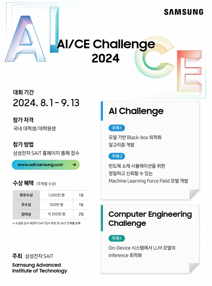 ▲ 삼성전자 SAIT, ‘인공지능, 컴퓨터공학 챌린지 2024’ 모집 공고