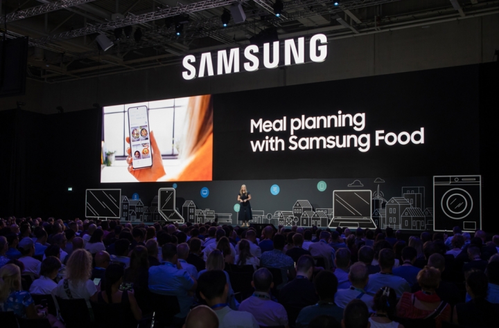 ▲ IFA 2024 삼성전자 프레스 컨퍼런스에서 삼성전자 영국법인 데보라 혼익(Deborah Honig) 상무가 ‘스마트싱스’, ‘삼성푸드’를 설명하고 있다.