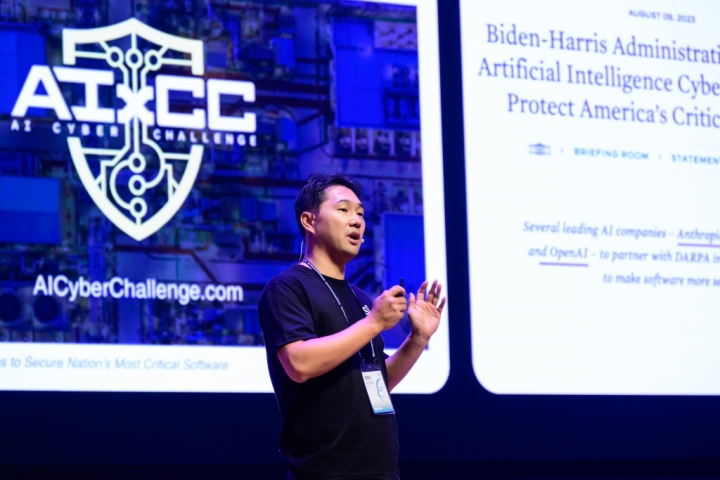 ▲ 삼성전자 서울 R&D캠퍼스에서 개최된 ‘제8회 삼성 보안 기술 포럼’에서 삼성전자 삼성리서치 시큐리티 & 프라이버시팀 김태수 상무가 기조강연을 하고 있다.