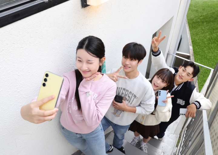 ▲ 삼성전자 모델들이 ‘갤럭시 S24 FE’로 셀피를 촬영하는 모습