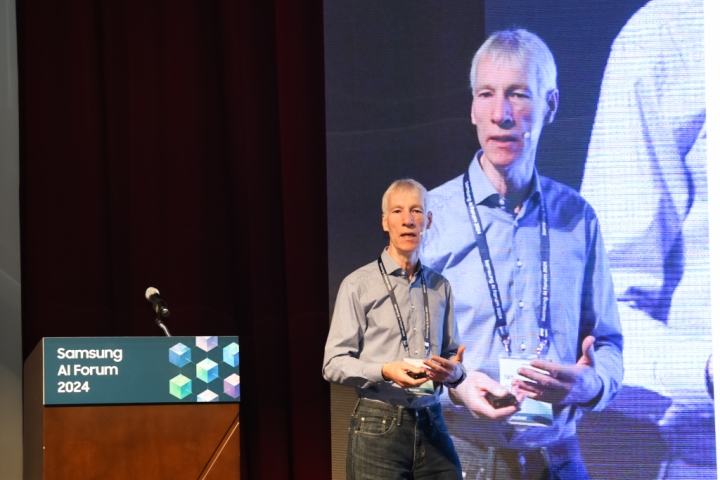 ▲ 11월 5일 삼성전자 서울R&D캠퍼스에서 진행된 ‘삼성 AI 포럼 2024’에서 기조 강연을 하고 있는 옥스퍼드 시멘틱 테크놀로지스 공동 설립자 겸 영국 옥스퍼드 대학교 이안 호록스 교수