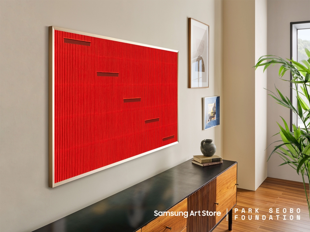 ▲ ‘삼성 아트 스토어’를 통해 단색화의 거장 고 박서보 화백의 작품을 만나볼 수 있다. ‘더 프레임’을 통해 만날 수 있는 ‘묘법 No.081105 (2008년 작)’