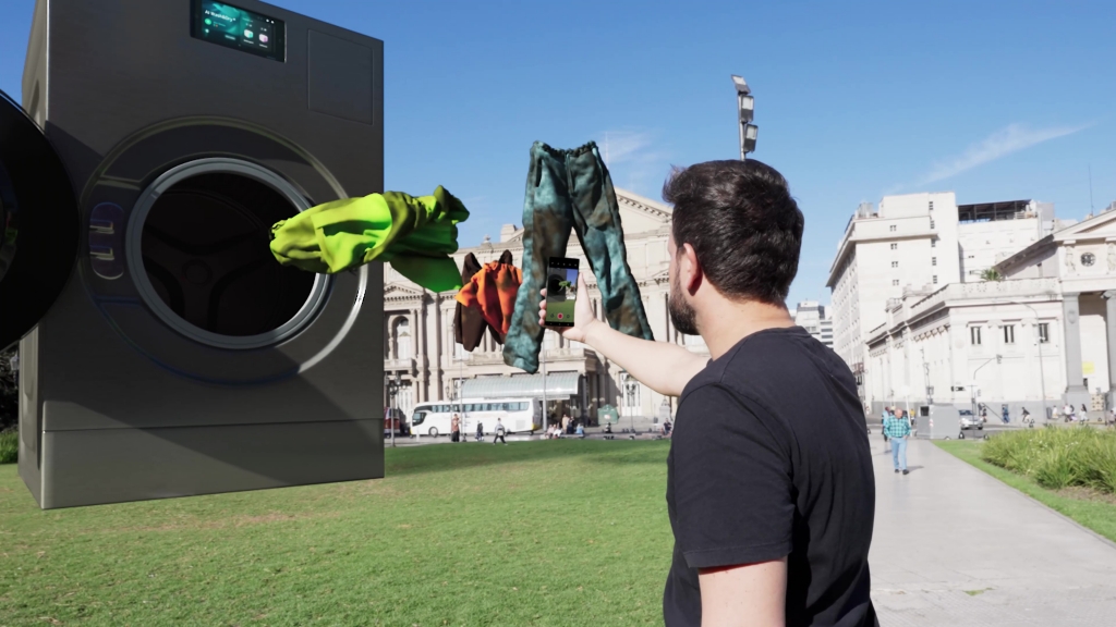 ▲ 삼성전자가 아르헨티나 수도 부에노스아이레스(Buenos Aires)에서 진행한 올인원 세탁건조기 ‘비스포크 AI 콤보’ 가상 옥외광고 영상 한 장면