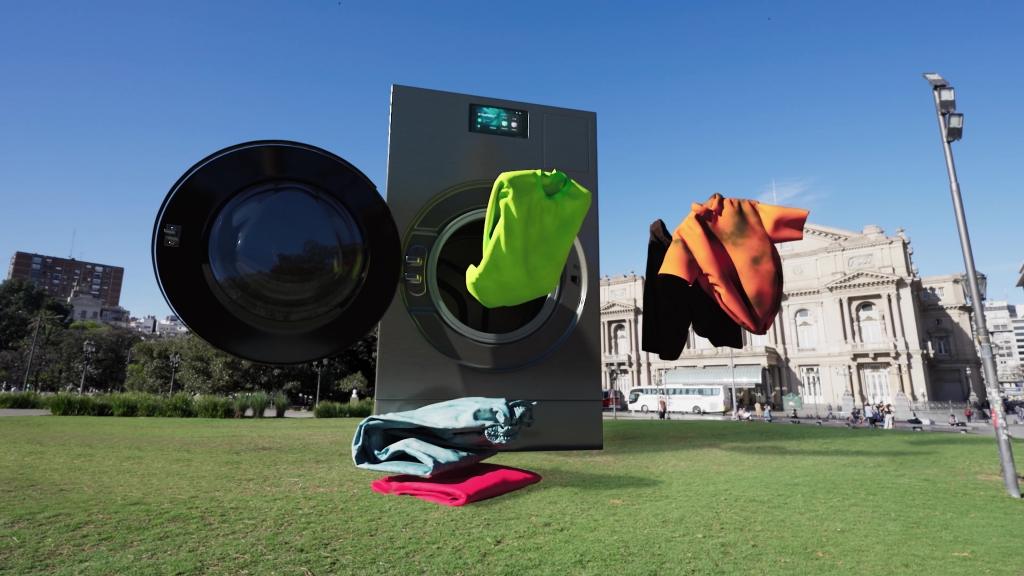 ▲ 삼성전자가 아르헨티나 수도 부에노스아이레스(Buenos Aires)에서 진행한 올인원 세탁건조기 ‘비스포크 AI 콤보’ 가상 옥외광고 영상 한 장면