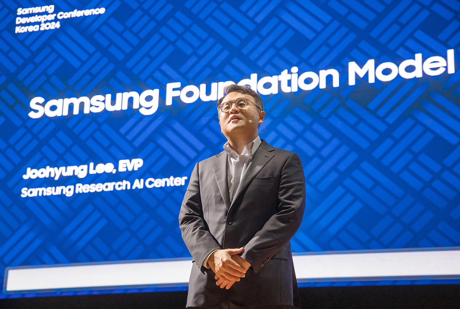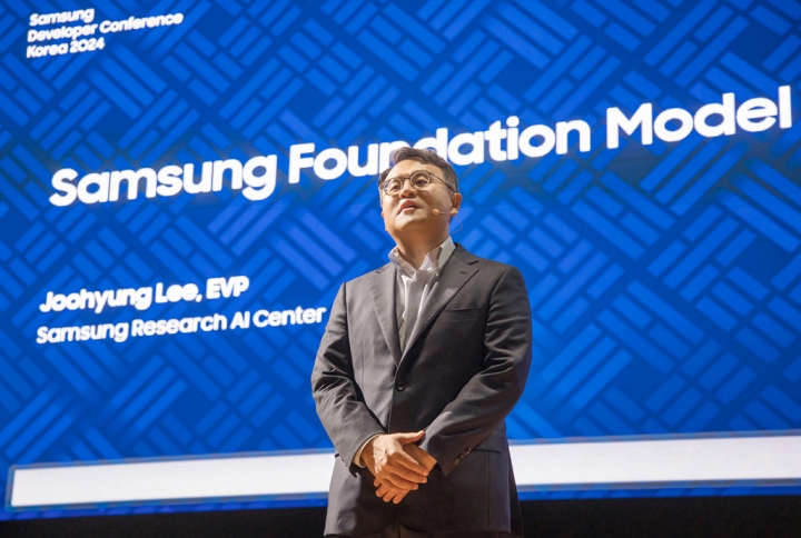 ▲ 21일 진행된 ‘삼성 개발자 콘퍼런스 코리아 2024’에서 삼성전자 삼성리서치 이주형 부사장이 ‘삼성 가우스2’를 소개하고 있다.
