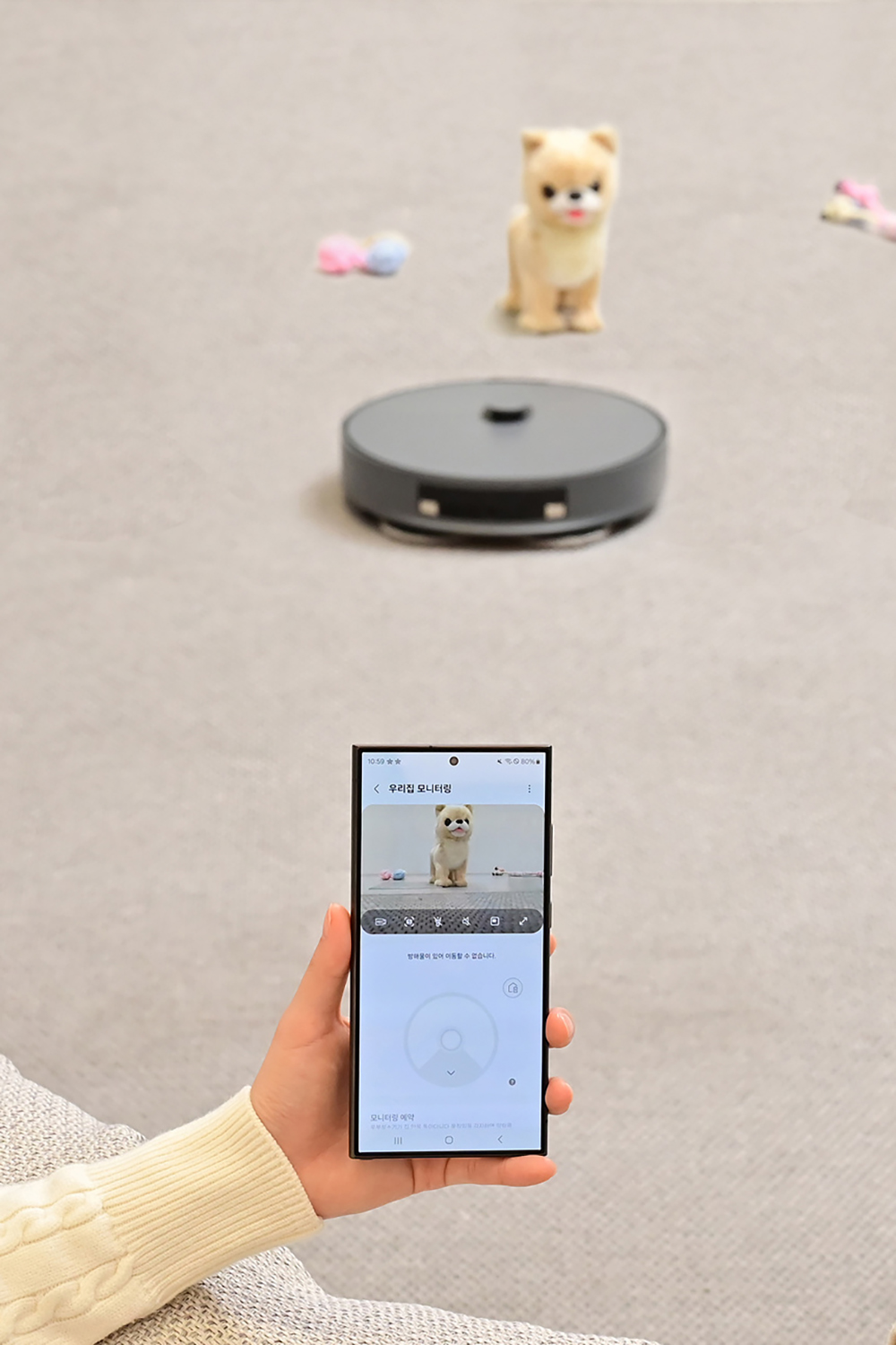 ▲ 실시간으로 반려동물 위치를 확인할 수 있는 '스마트싱스 홈 모니터링' 기능을 체험하고 있다.