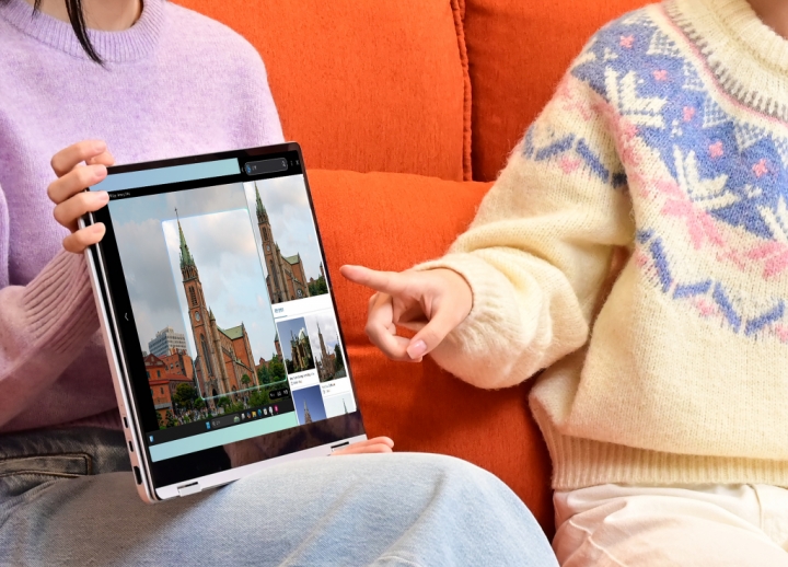 ▲삼성전자 모델이 AI PC ‘갤럭시 북5 시리즈’의 ‘AI 셀렉트’ 기능을 체험하는 모습