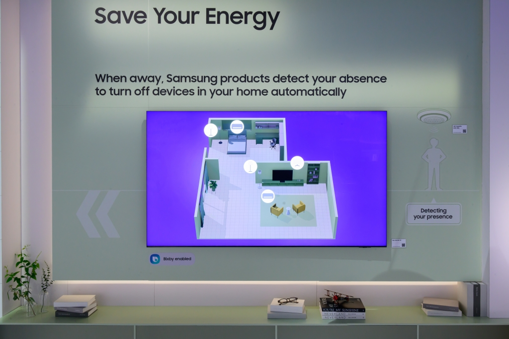 ▲ 삼성전자의 ‘에너지 절약’ 기능은 사용자의 움직임을 감지해 TV와 에어컨을 절전 모드로 전환하고, 장기 부재 시 추가 절감 모드를 실행한다