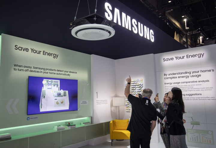 CES 2025가 열리고 있는 미국 라스베이거스 컨벤션 센터 삼성전자 전시관에서 관람객들이 다양한 제품과 솔루션들을 체험하고 있다.
