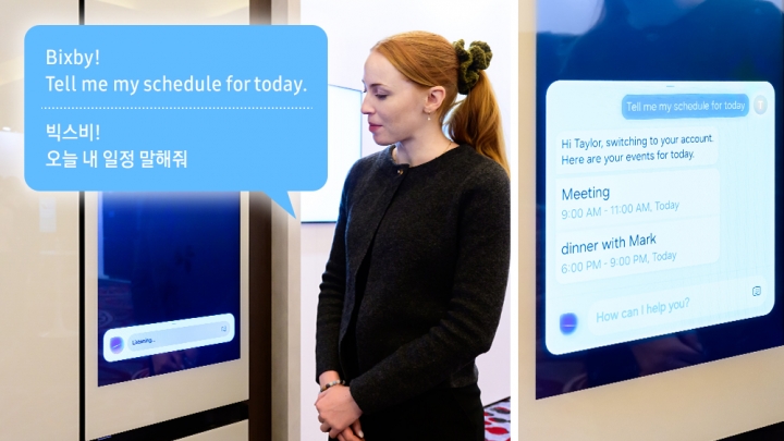 ▲빅스비에게 오늘의 일정을 묻자, 패밀리허브 스크린에 신속하게 띄워줬다