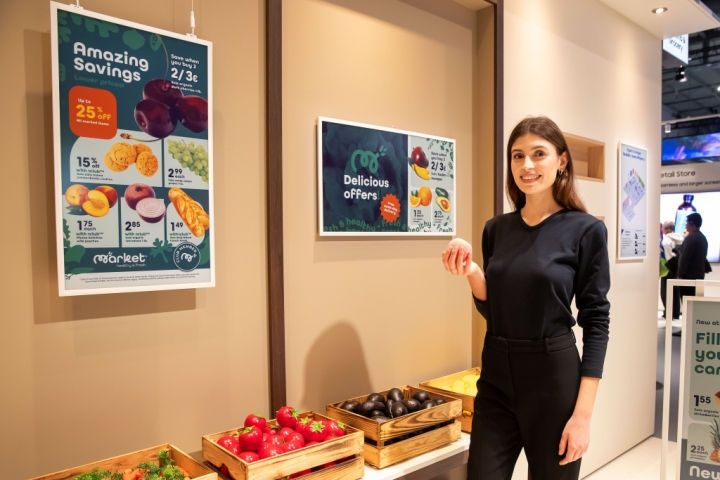 ▲ 삼성전자 모델이 2월 4일부터 2월 7일(현지시간)까지 스페인 바르셀로나에서 개최되는 유럽 최대 디스플레이 전시회 ‘ISE 2025’에서 소비전력을 혁신적으로 줄인 초저전력 디스플레이 ‘삼성 컬러 이페이퍼’를 소개하고 있다.