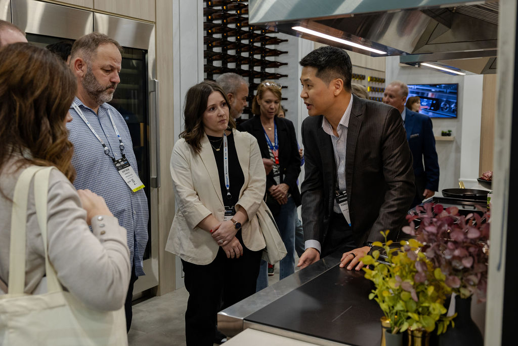 ▲ KBIS 2025 삼성전자 전시장을 찾은 관람객들이 비스포크 가전을 체험하고 있다.