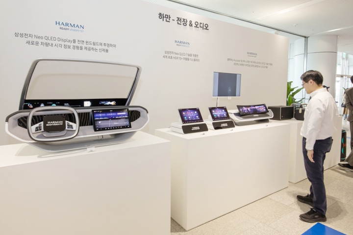 ▲ 삼성전자 제56기 정기 주주총회장 하만존에 전시된 전장ㆍ오디오 모습